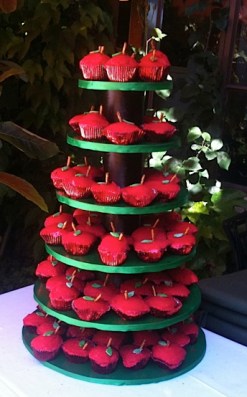 More than 130 local teachers turned out for the End of Year Celebration last May, filling the garden patio at Jalisco’s Restaurant in Watsonville for a record turnout. This year’s celebration had a few extra special perks to show teachers the ♥, including the DIY Easy & Inexpensive Cupcake Stand I created loaded down with cupcakes resembling apples.