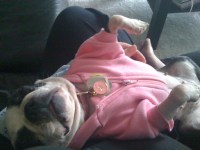 On a side note, I used to be totally against clothing on dogs. I also used to have a Bordeuax Mastif who would have looked ridiculous in clothing and certainly never needed it in California. I now have a small dog with short hair who gets cold, even in the mild Bay Area weather. I asked the vet why she shivered; the doc said ‘get her a sweater.’ Granted, that was in San Francisco, but still. I gave in; Abby loved it and tries to climb back into her warm clothes. Seriously. She’s hilarious.