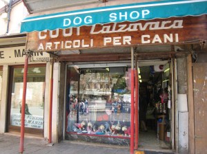 Why was I venturing out even thought the sky looked like it would open up and consume me? Well, for Abby of course! Prior to leaving, I filled a wonderful pet food travel container with bowls with Abby’s kibble (plus a ziploc in my carry-on in case our luggage was lost, which it was not so thank you Lufthansa). Perhaps my kibble calculations went awry because on Monday it became apparent that Abby would run out of kibble in the next day or two! Luckily, I’d noticed two dog shops on my adventures in the city (and I had Maggie in Venice‘s find as a backup). Surprisingly, both dog shops seemed to double as a shoe repair shop. I have no idea how these seemingly unrelated items pair, but I’ve seen it 3 times now so it seems to be a common Italian pairing!