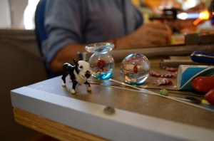 Along our wanderings, we met two brothers who’ve been blowing and working with glass together for about 26 years and have side-by-side stores. We had seen plenty of tiny animal figurines and even many dogs, including a Pug, but no Boston Terrier. So when Giorgio offered to make anything we’d like while we watched, we jumped at the chance to have a tiny Abby figurine. He took a good look at her and got started while I began snapping pictures (no video allowed).