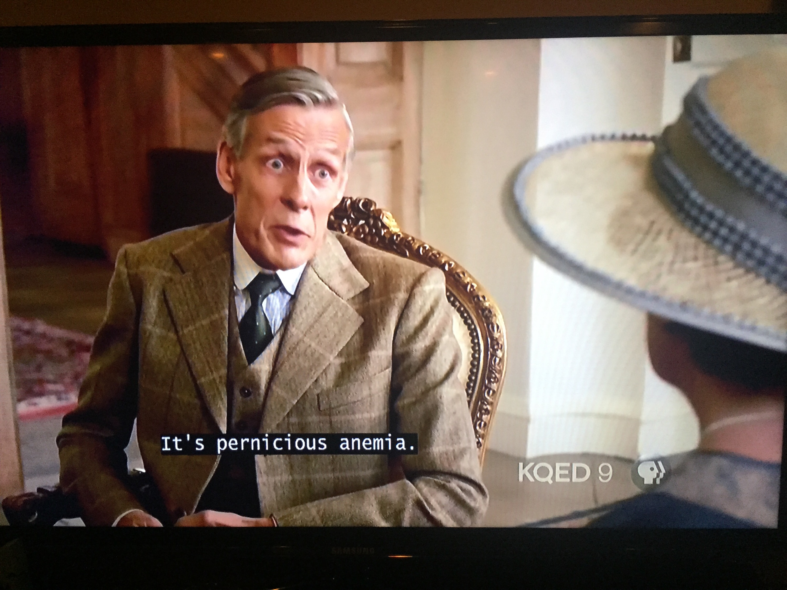 SPOILER: On a side note, in the first few minutes of tonight’s finale Mrs. Crawley’s beau Dickie is diagnosed with pernicious anemia. Thank G-d we could pause the TV because we both freaked out; I think I actually told the TV to shut up. Pernicious anemia is exactly the diagnosis I was given about a month ago! Luckily for me, it’s no longer deadly. Doctors have figured out that Vitamin B12 injections should help.