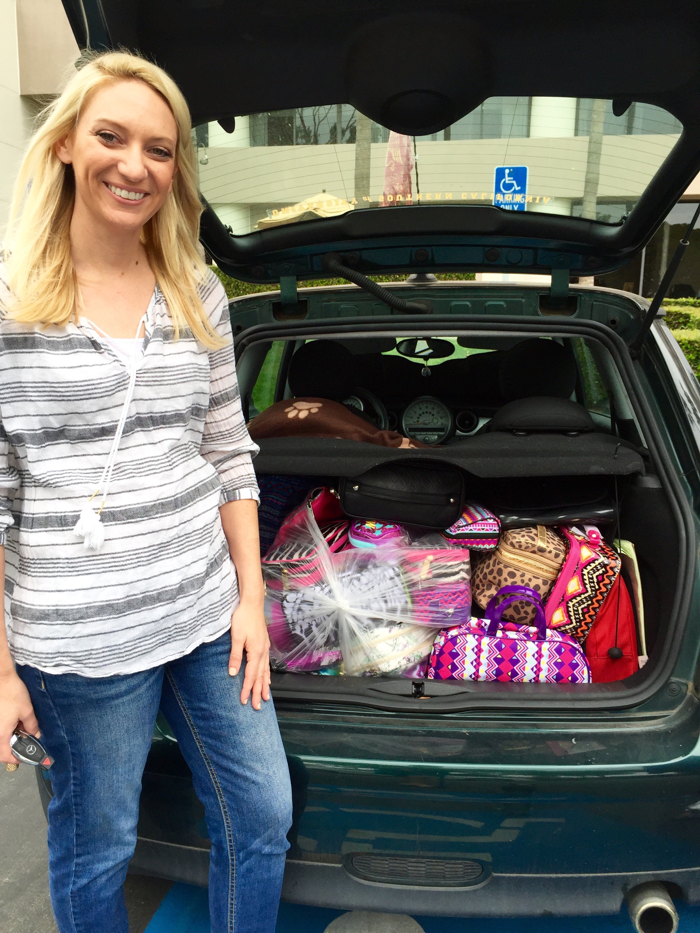 After a post-wedding brunch, Lauren invited us to dig through her trunk and pick out some bags! She kindly suggested we take extra as gifts for friends, thereby saving her a trip to goodwill to unload the bags. Now that’s a win-win!