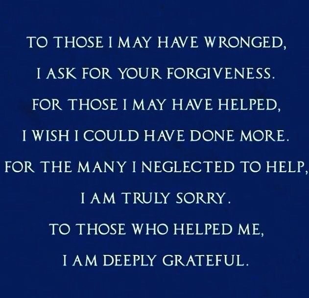 “To those I may have wronged, I ask for your forgiveness. For those I helped, I wish I could have done more. For the many I neglected to help, I am truly sorry. To those who helped me, I am deeply grateful.” (Thank you to whoever put these timely words into a Yom Kippur meme.)