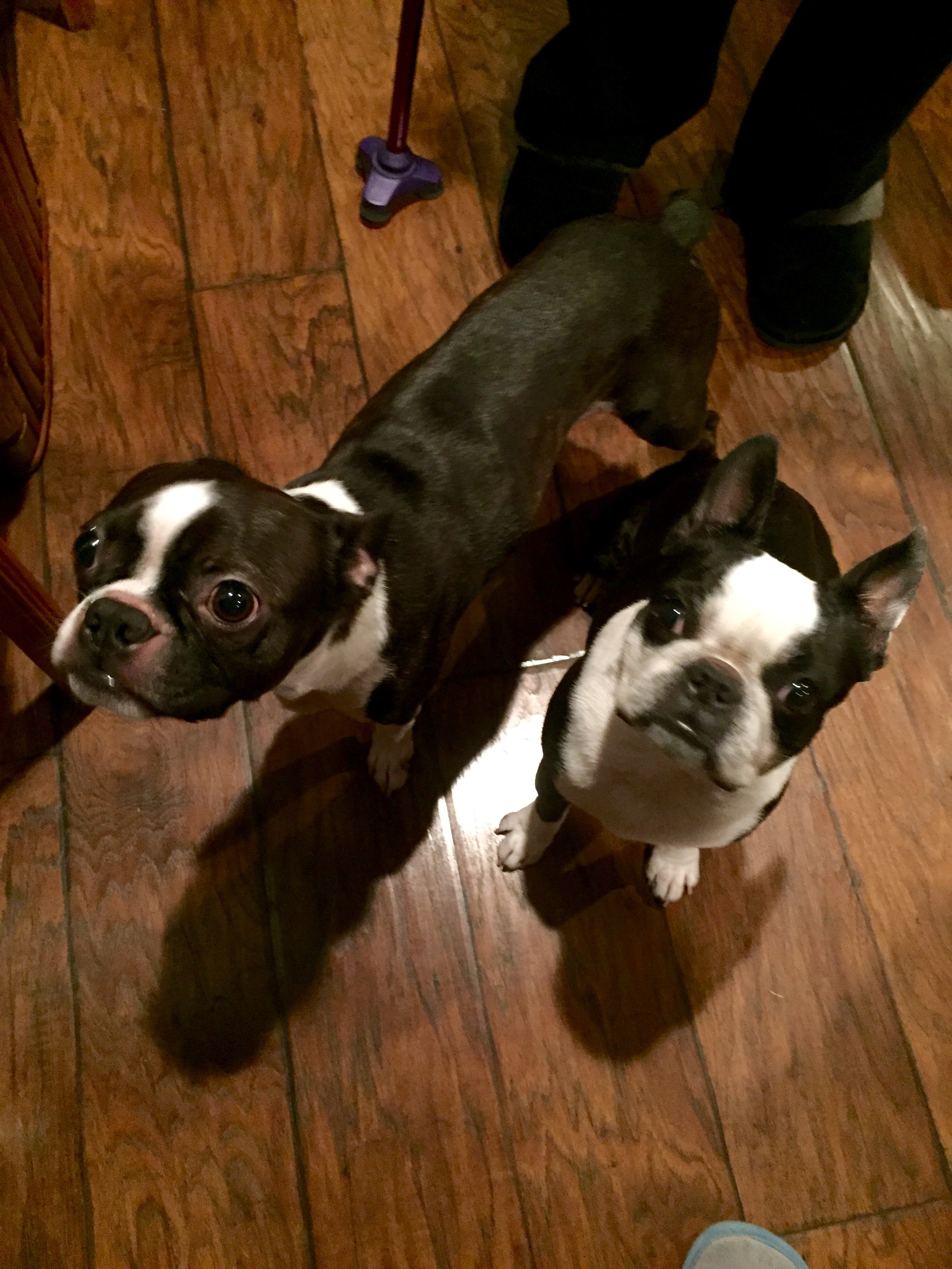 The two Bostons played together, running around the living room and competing for endless affection from the humans. There was a lot of licking. It was adorable to see them side by side! And it was fun spending time with a kindred Boston Terrier obsessive.