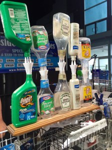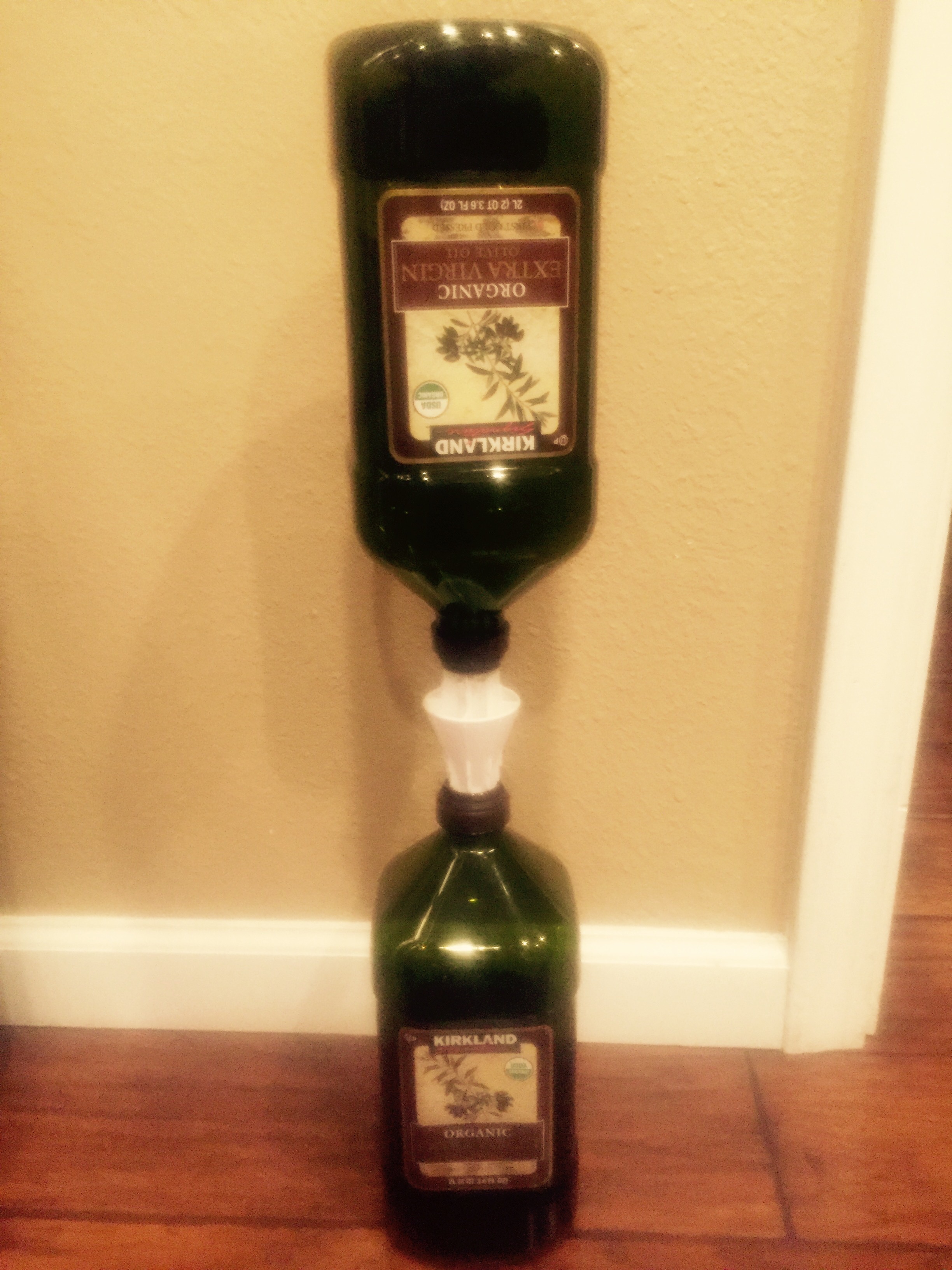 While at a local Home & Garden Show this past weekend, Mama and I spotted a cool little gadget that helps you drain contents of one bottle into another without creating a huge mess!
