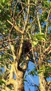Mama and I were enjoying the afternoon sunshine in our backyard when we discovered a bird’s nest in our plum tree. We think they migrated to our yard after a neighbor recently removed a massive tree from their yard that housed many birds.