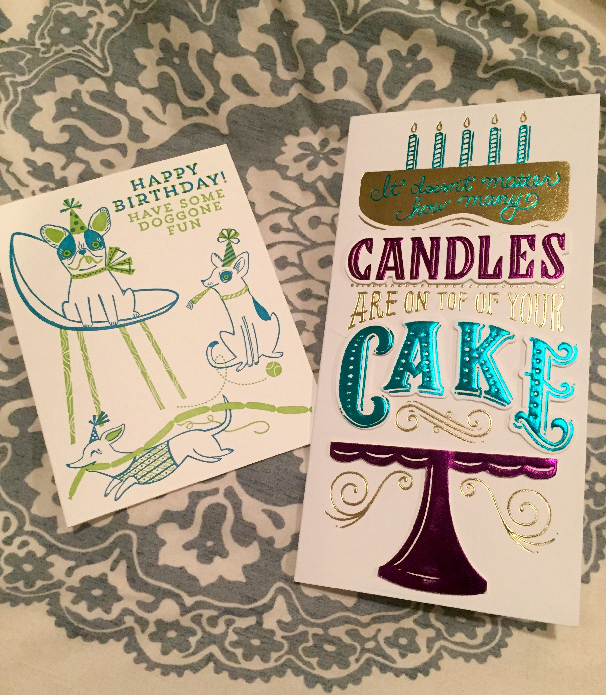Normally I don’t care for mail because it’s mostly bills and junk these days. But today’s mail included these two lovely cards with sweet notes from two of my best friends.