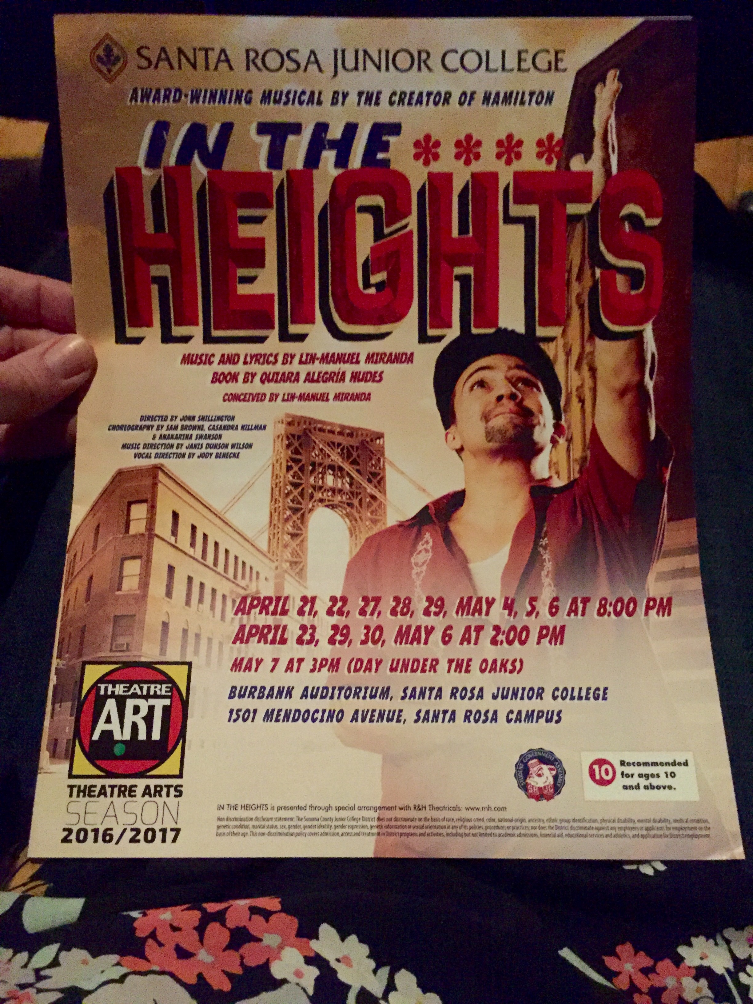 Mama and I got tickets for today’s excursion in January and we’d been looking forward to it for months. Hamilton creator Lin-Manuel Miranda’s award-wining musical “In The Heights” is being performed at our local junior college!