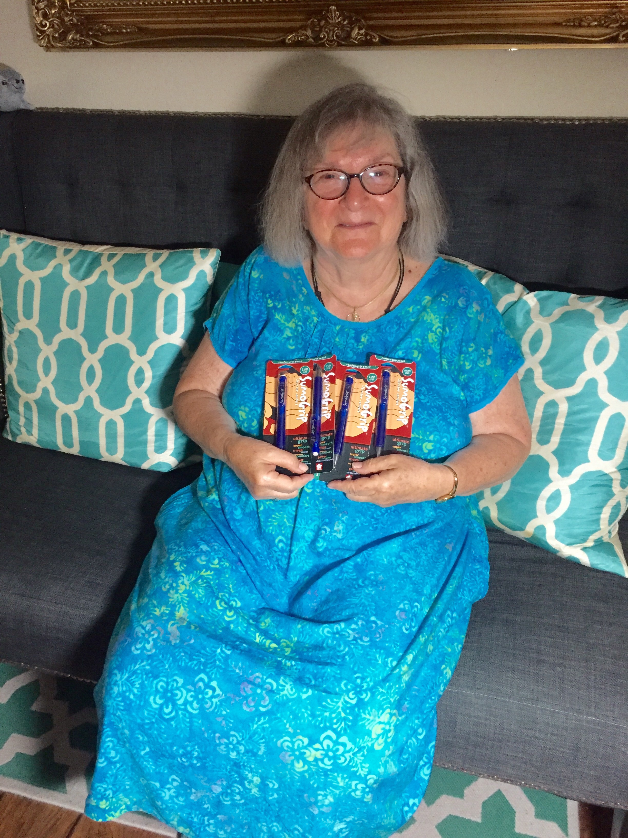 Mama looked like the cat that ate the canary today when several of our favorite pencils arrived in the mail. She was so cute that I had to take a photo!