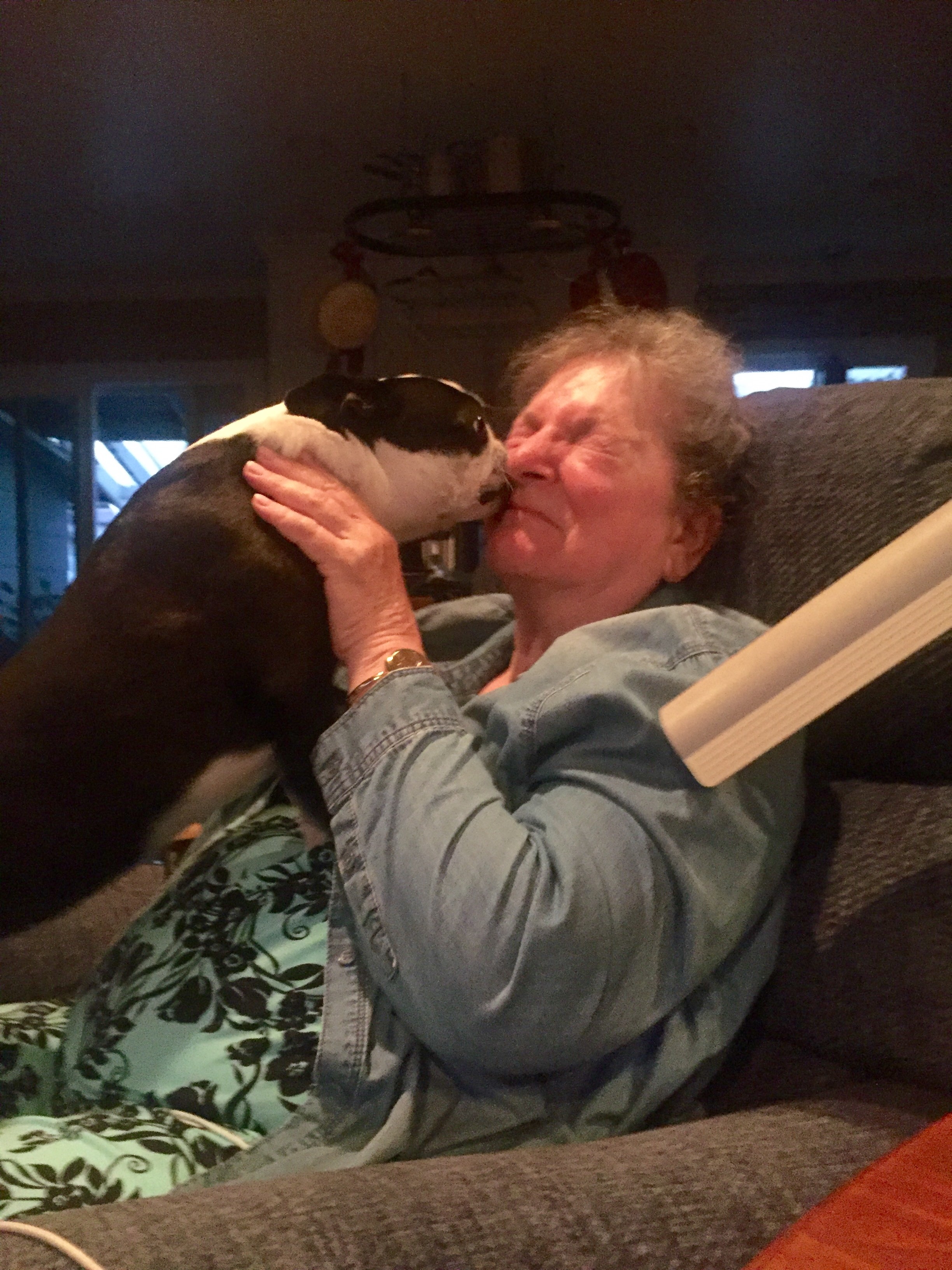 Today’s #OneGoodThing was Mama‘s delightful, uncontrollable giggles at receiving a thorough facial from our sweet dog, Paisley. Their love for each other was so adorable that I had to snap a photo! I’m so grateful she came into our lives!