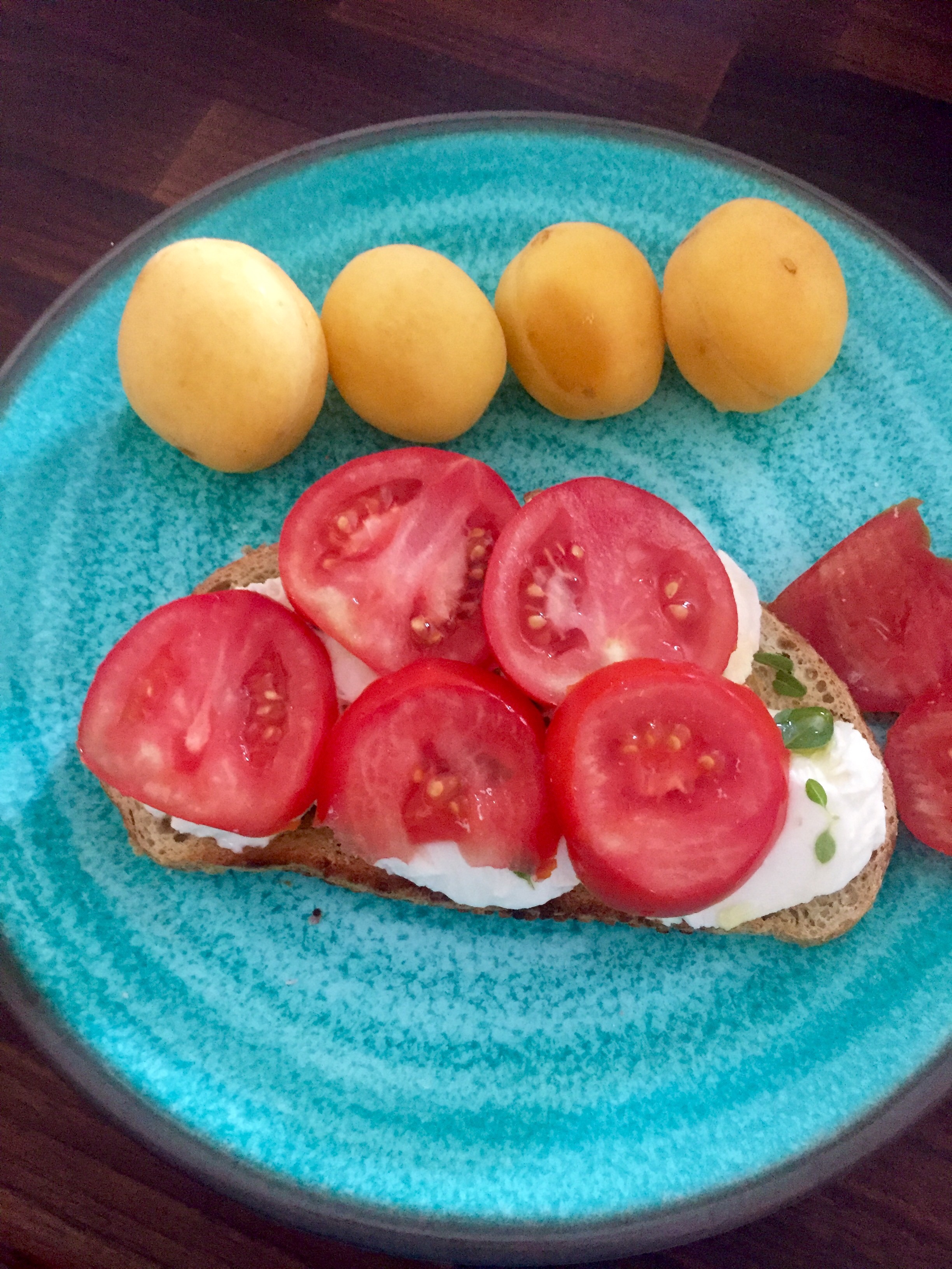 Today’s #OneGoodThing was this beautiful, tasty Caprese toast with our beloved Angelcots for dessert!