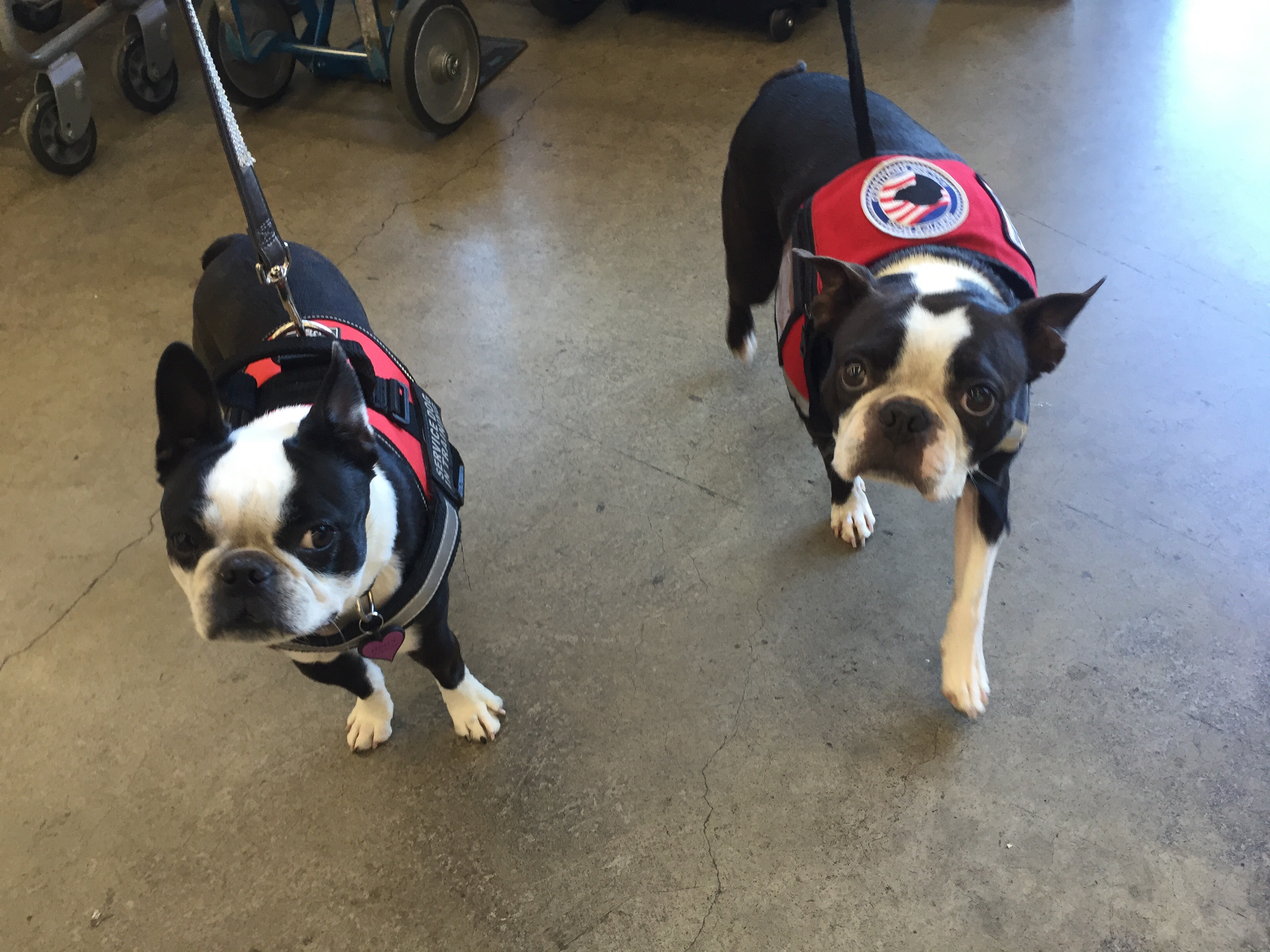 Meet Martin — he’s the adorable Boston terrier wearing the red service dog vest on the right. I always enjoy meeting another Boston devotee, and it was fun to see the two dogs sniff each other out.