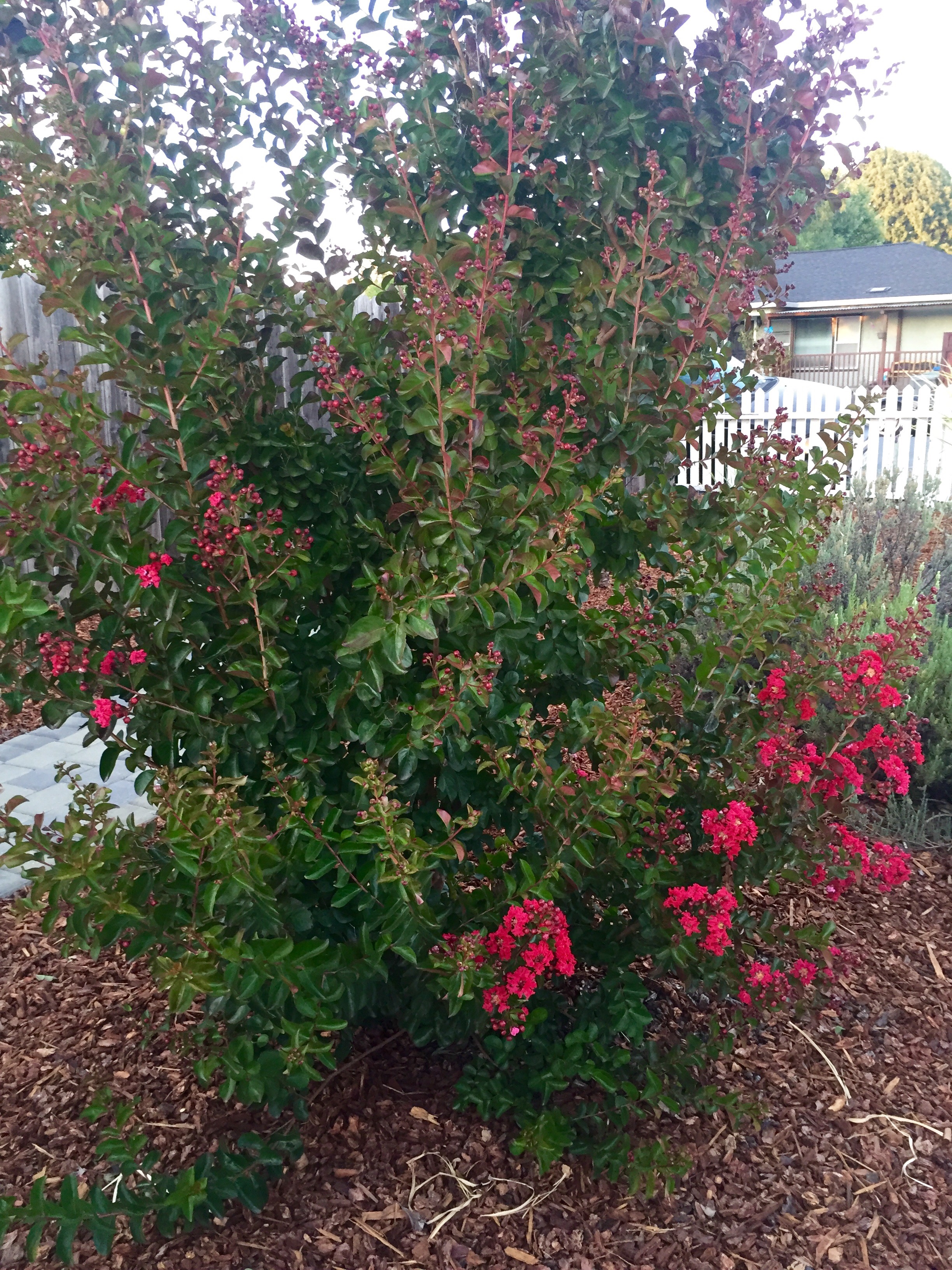 One of the crepe myrtle trees in our front yard has FINALLY started blooming!