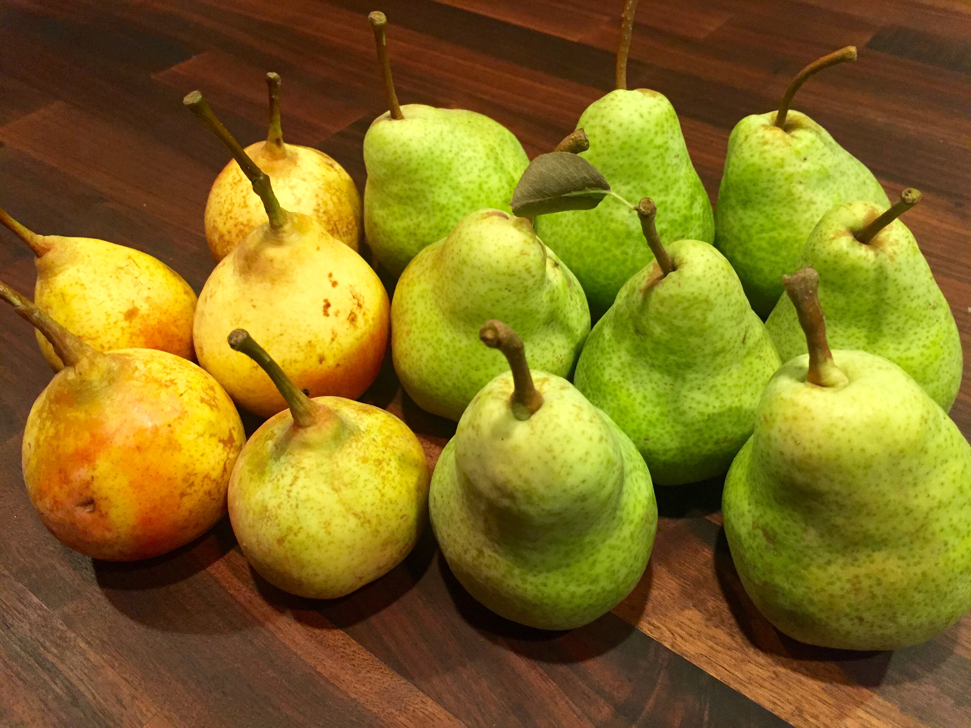 We’ve been enjoying sharing the giant zucchini from our garden with friends — and today we received a glorious (and unexpected) bag of homegrown pears in return from our friend Kelley!