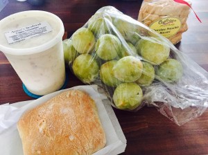 We also picked up some of the most incredible clam chowder we’ve ever enjoyed. It was chunky, flavorful and hearty — and it paired splendidly with the crunchy, soft ciabatta bread. Of course, dessert was Emerald Beaut pluots. Plus, we decided to try these chocolate pistachio biscotti; we were not disappointed. It was all so good!