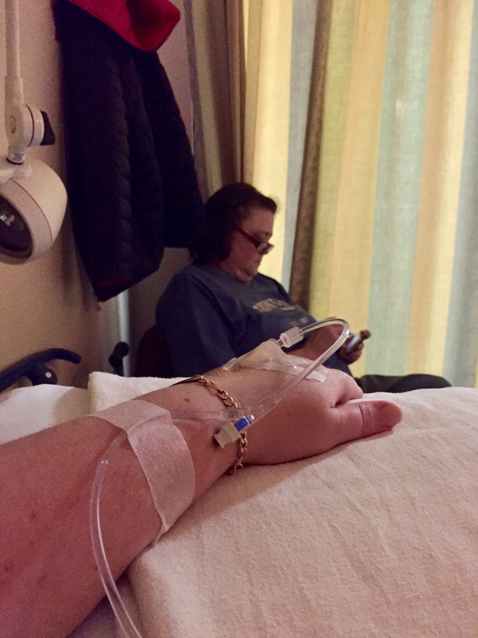 Today was my fourth round of low-dose chemotherapy infusion to control my Crohn’s Disease, and once again, our dear friend Kelley drove me and kept me company.