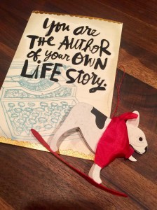 The skiing dog paper ornament has a bandana around its neck and a crazy tongue like our beloved Abby. Even better than this little cutie, is the heartwarming message written inside the card. What a lovely surprise to find in the mailbox! Thank you Angelina!