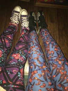 They’re by LuLaRoe and they’re super soft and very stretchy. Mama and I each found a pattern we liked and we’ve been eagerly awaiting their arrival. Today’s mail included our leggings and we weren’t disappointed. They’re so comfortable and colorful!