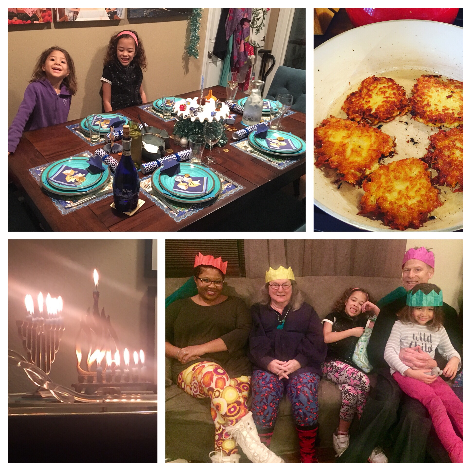 We celebrated the sixth night of Chanukah with homemade latkes, mouthwatering brisket, jelly donut holes, and our sweet neighbors!