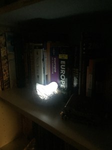 Mama and I enjoyed catching up with Kelley. We were super excited to give her the special holiday gift we made for her — a big coffee mug featuring photos of Kelley with Abby and Paisley! She loved it! Kelley also brought a magical glowing bird light and hand lotion for us.