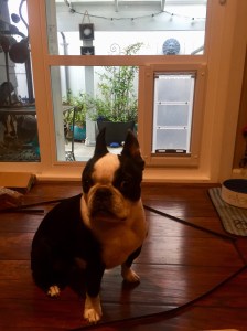 Paisley took to the new door quickly. The magnet is much stronger than our crappy old dog door insert, so it took some practice. After just a few minutes of treats coaxing her back and forth, she got the hang of it!