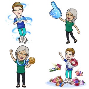 Today’s #OneGoodThing was watching Olympic ice dancing with Mama! (Side note: As a humble freelance writer without permission to use Olympic images, I hope you enjoy these Olympic themed bitmoji of Mama and me.)