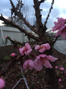 Our newly planted peach tree made it through the frost and is now flowering!