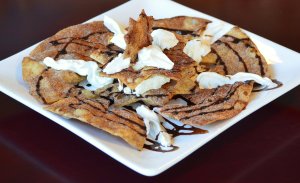 Mama and I have recently fallen in love with the Mexican restaurant around the corner, and tonight we discovered they have a wonderful dessert called Sopapillas. It’s a crispy fried flatbread sprinkled with cinnamon and sugar, served warm, and topped with whipped cream and a chocolate drizzle. It was absolutely delicious!