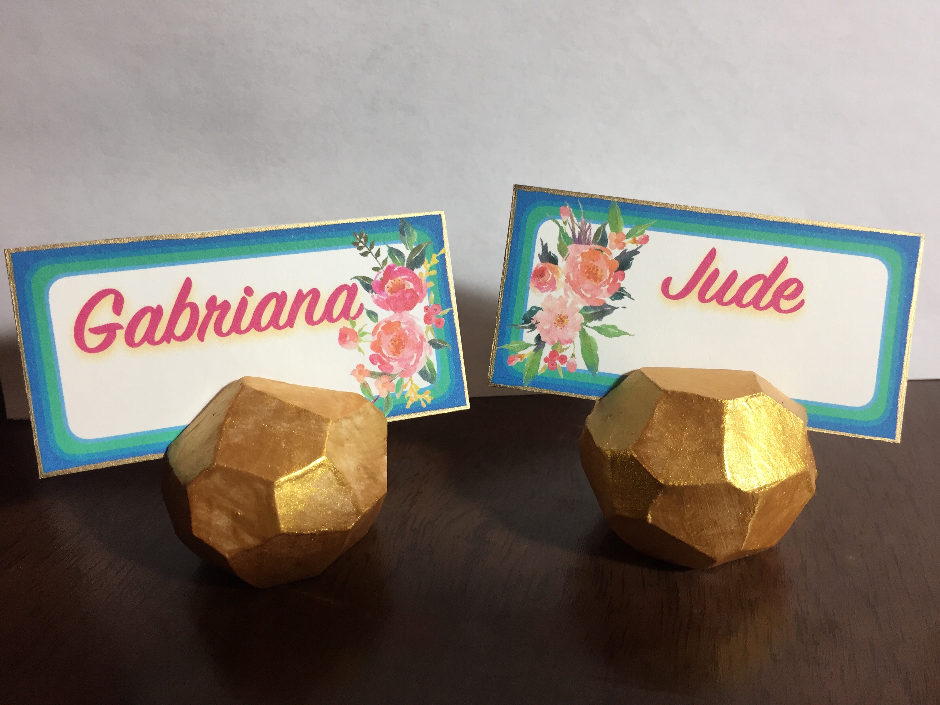 I made the gem-like geometric place card holders using white clay and gold paint (I vaguely followed these instructions). I love working with clay, and the project kept my hands busy while watching the singing shows Mama likes during the last few months.