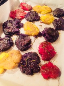 Colorful, smashed potatoes