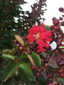 Today’s #OneGoodThing was the very first blossom appearing on Mama’s favorite tree — our crepe myrtle! We are so eager for this tree to be exploding with color!