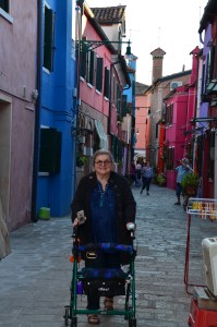 Mama is happily rolling her way through Burano, with her iPhone ready to take photos!