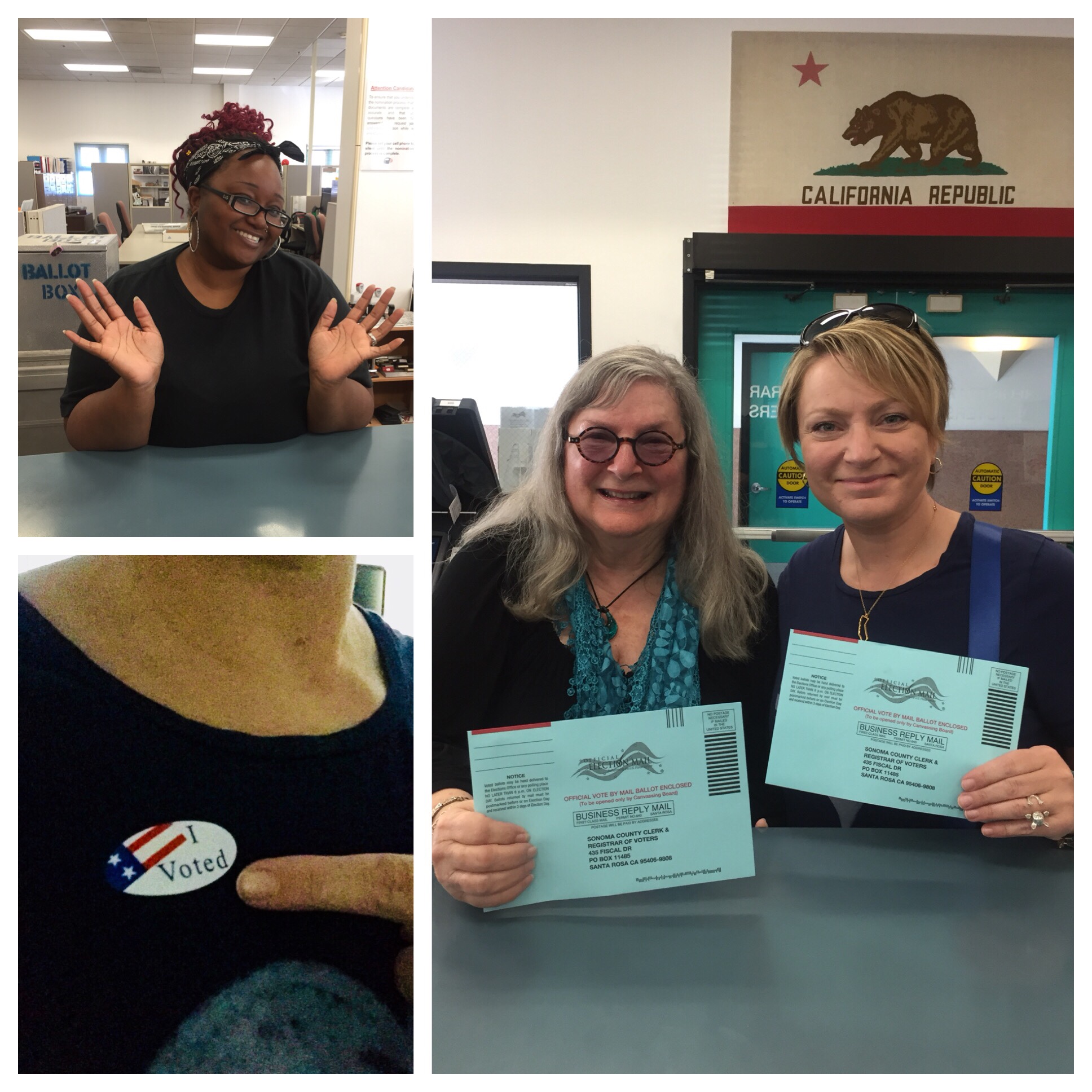 Mama and I live in a mail-in voting only area, but we like to collect our “I Voted” stickers and we wanted our ballots to be counted early. There was no line, the staff was friendly, and we accomplished our two goals!