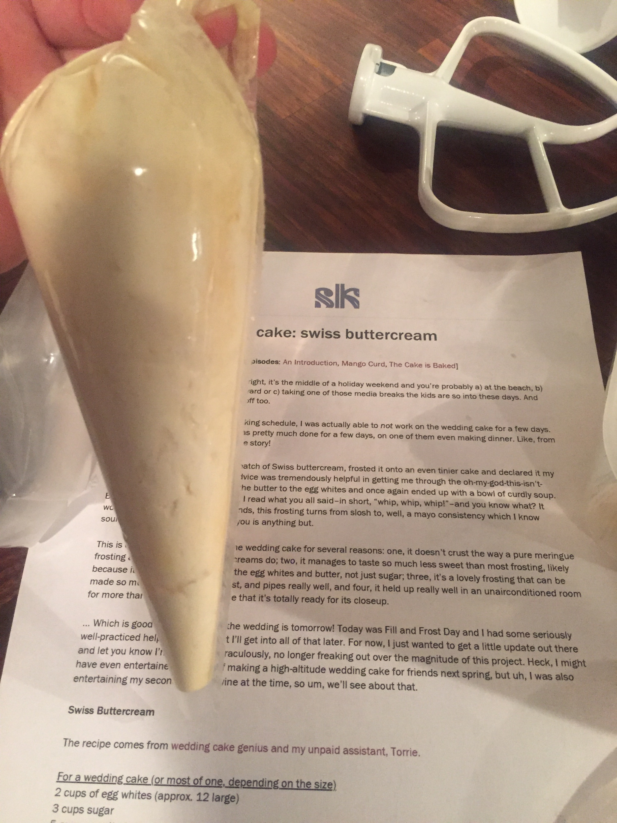 I found a recipe for Swiss buttercream from smitten kitchen (one of my favorite food blogs), and tested it out in the tiniest amount listed. I’d never made this particular type of buttercream before, and I was nervous about how the heated egg white step would turn out.