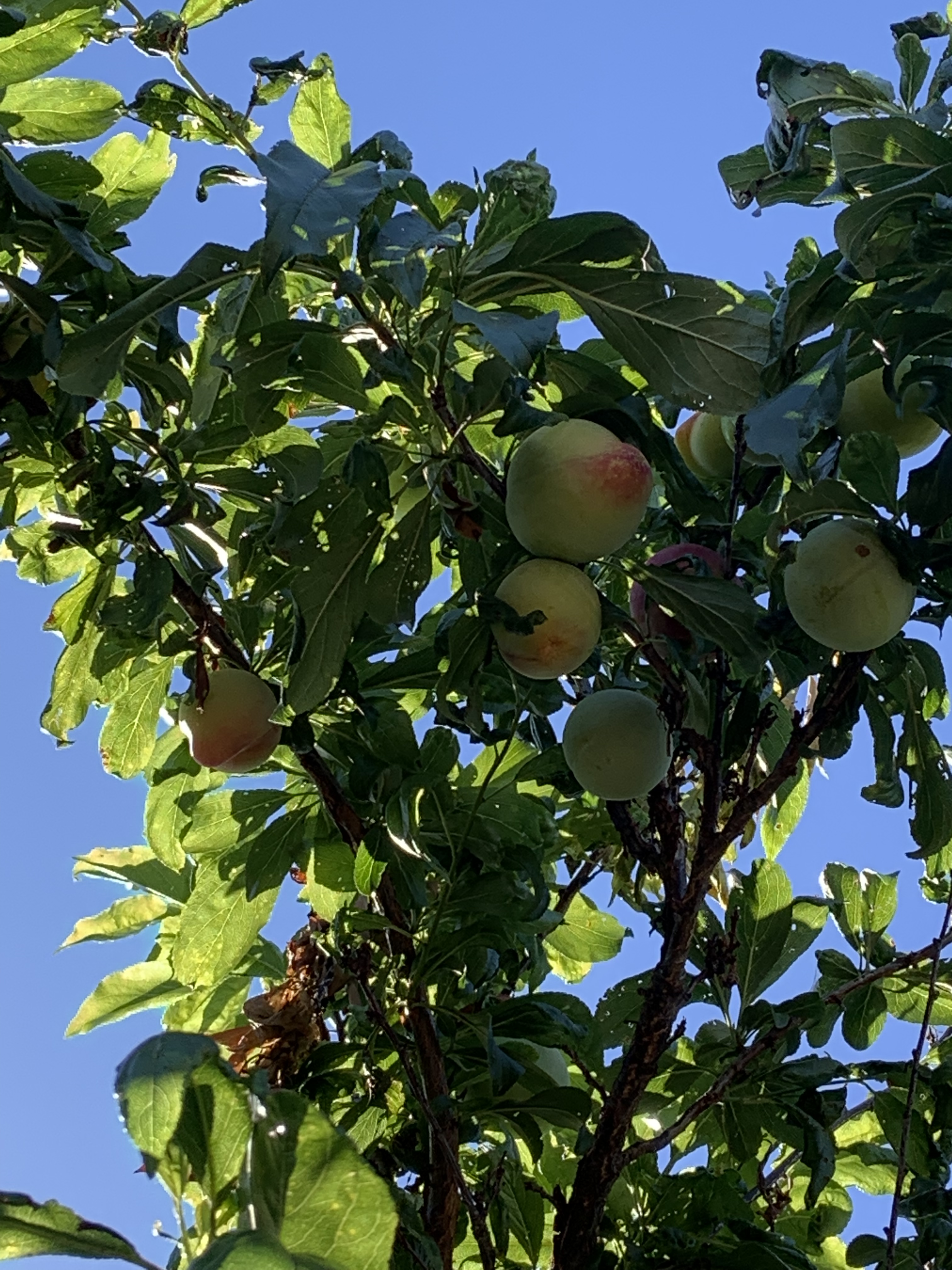 Today we discovered a slight purpling of our plums, which are mostly still green but have doubled from their wee size. We’re eager for them to ripen and hope the crows don’t steal them all first.