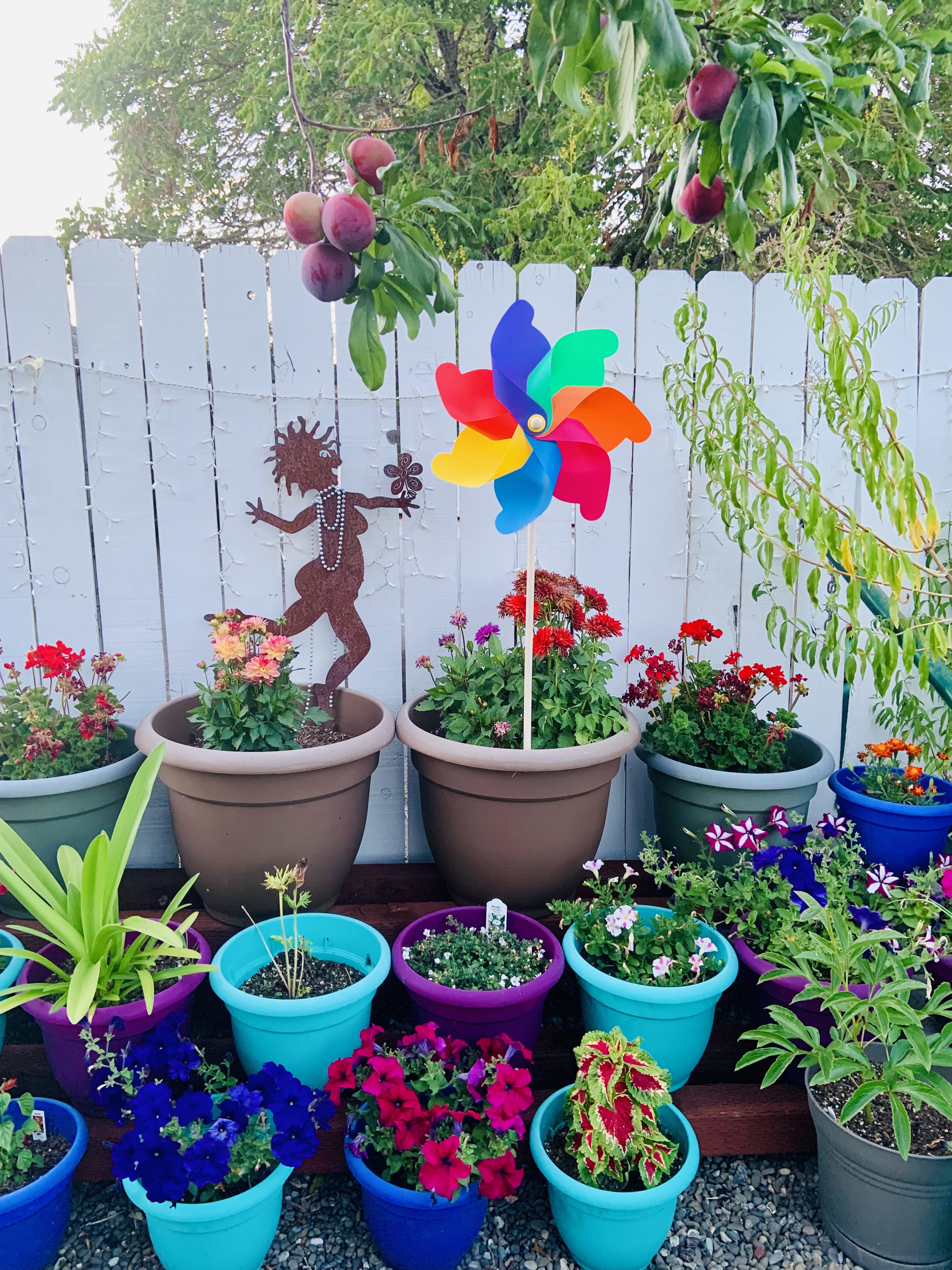While running errands today, I fell in love with this rainbow pinwheel and knew it had to be part of our garden. Mama wasn’t convinced until we stepped outside and she witnessed my childlike delight watching the wind blow it wildly.
