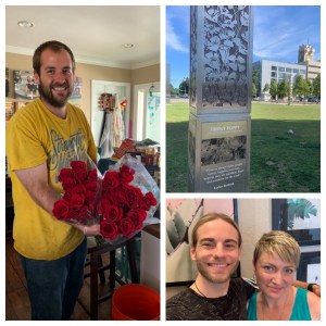 In the afternoon, I got my hair done! I love the shorter, sleeker, blonder look. Many thanks to Matthew and D’nae! After my appointment, I went for a wee walk around downtown Santa Rosa. I adored this statue of poppies with a quote from Luther Burbank: “Flowers always make people better, happier, and more helpful; they are sunshine, food and medicine for the soul.” How perfectly timed to see this quote today!