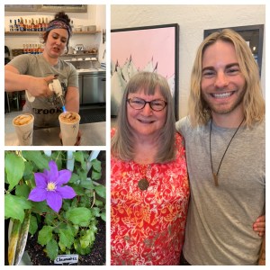 While Mama was getting this gorgeous new haircut with our fabulous stylist Matthew, I picked up a new type of coffee drink for us. Check out our friendly barista torching the top of our creme brulée lattes!