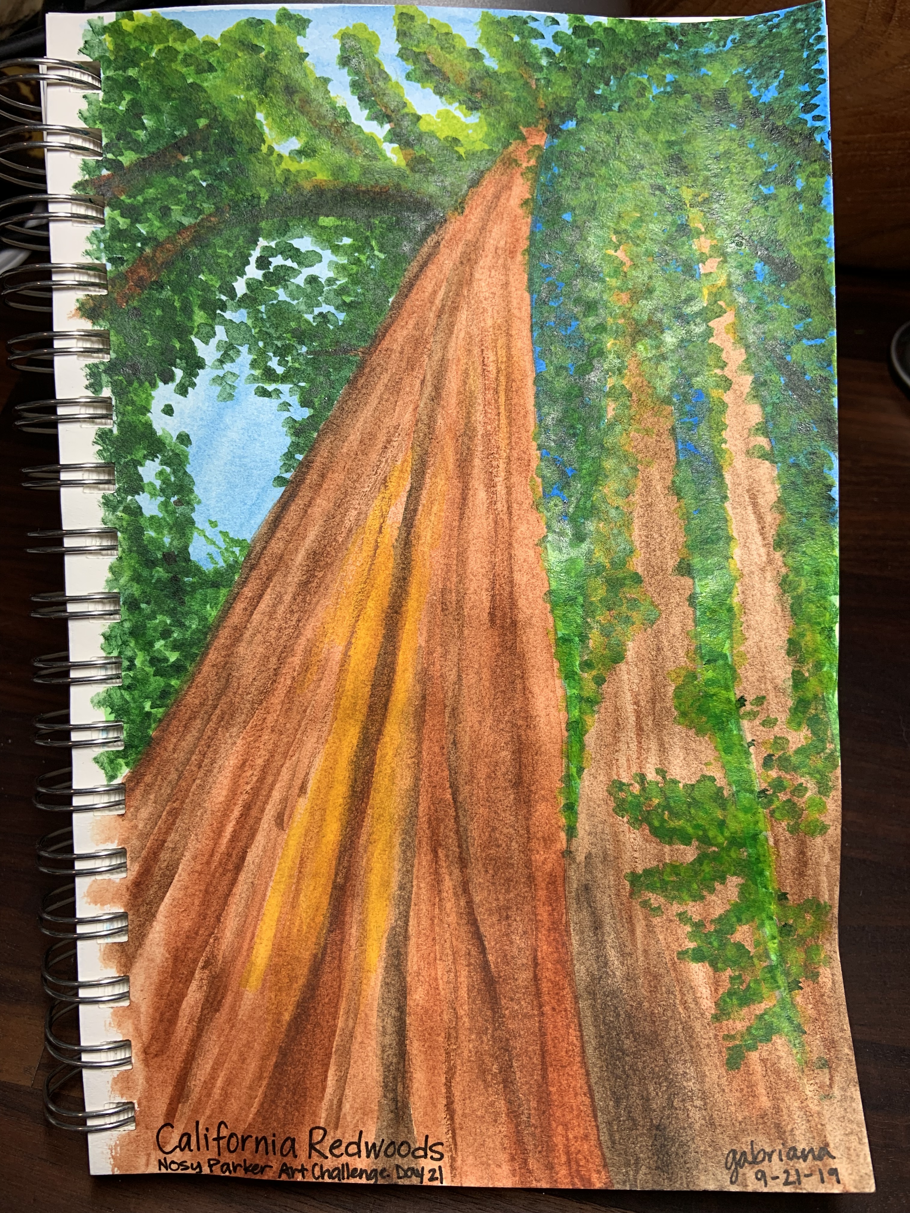 Today’s Art Challenge was nature; I painted these California Redwoods.