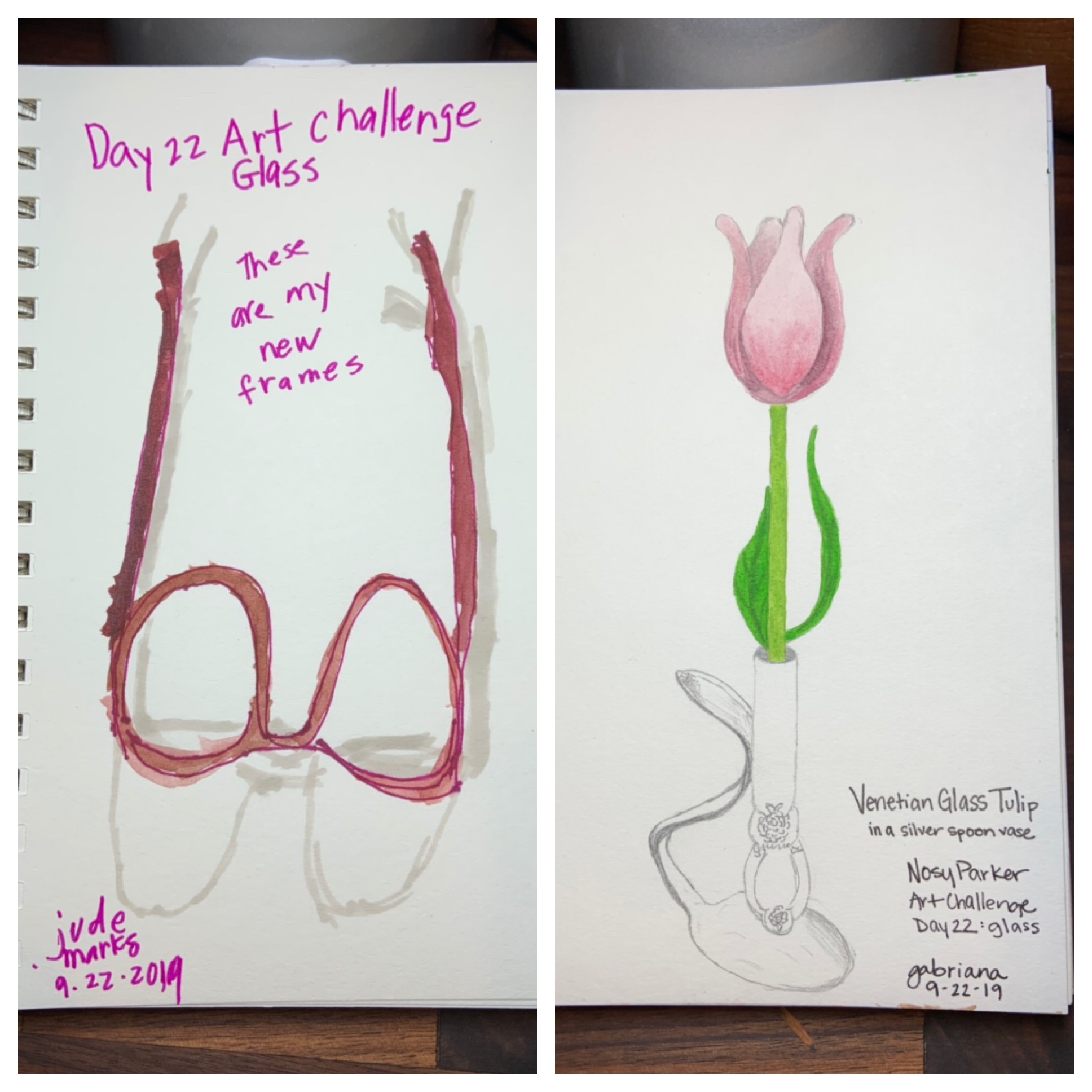 The inspiration for today’s Nosy Parker Art Challenge was glass. Many of this month’s creative prompts are a nod to our adventures in Venice, Italy. We’ve enjoyed searching through old trip photos and mementos to get ideas for our drawings.