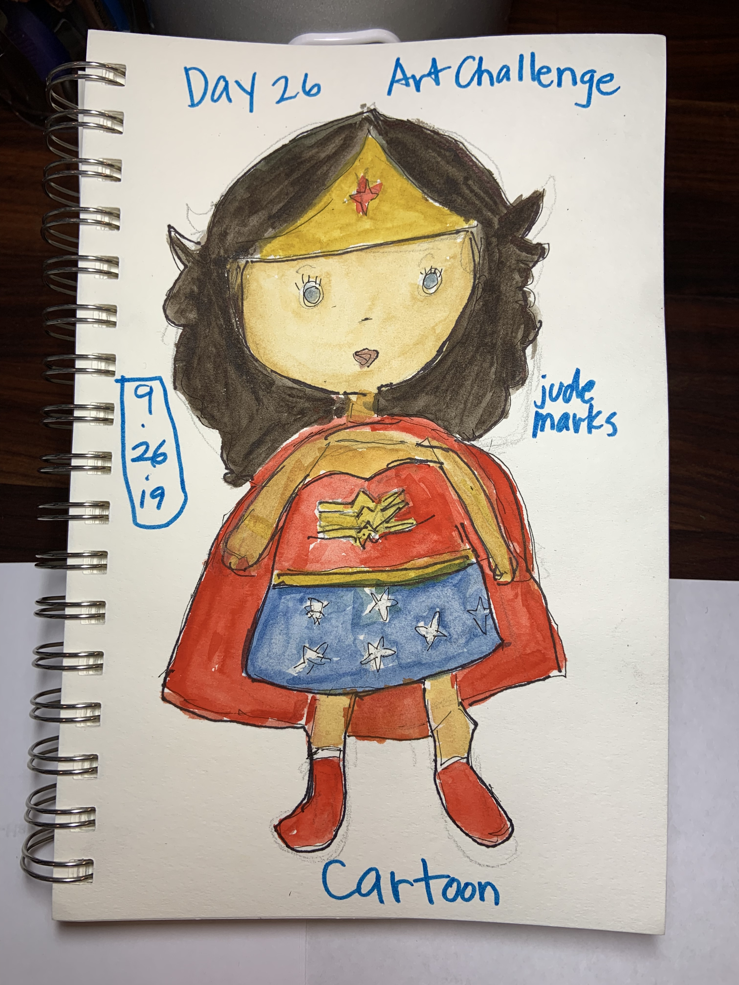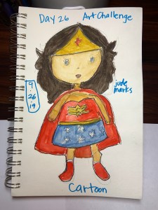 Mama is pleased to share her finished cartoon from yesterday: Wonder Woman! See below!