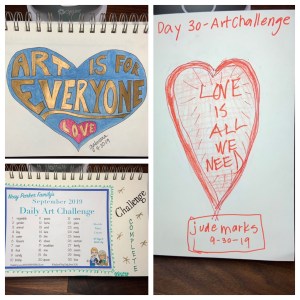 Our month of creativity culminates today with the inspiration/prompt: love. This daily art challenge has been a labor of love. Yes, perhaps some dishes went undone, and laundry lingered. But Mama and I rekindled our love for drawing and painting with watercolors.