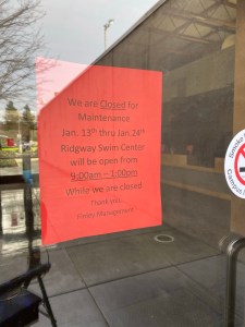 We strongly considered just going back home. After all, we have a routine we like. But we called the other swim center listed on the closure notice and ended up going over there. Mama walked back and forth in the pool and I swam laps. It felt so good and we were really glad we’d persevered to find a pool!