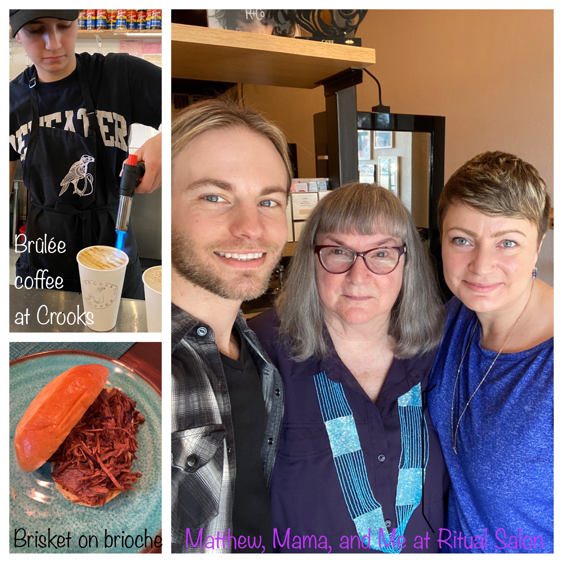 Mama and I both got to see our incredible stylist Matthew for a little clean-up (on my pixie) and bang trim (for Mama). And the special coffee helped power me through it all.