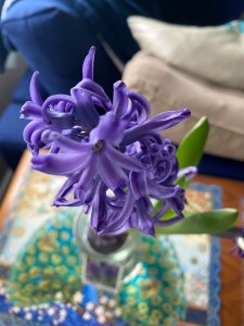 We’ve been enjoying watching the Hyacinth grow and now we’ve got these pretty purple flowers with a lovely sweet fragrance!