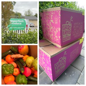 Upon the recommendation of friends, we signed up for a service called Imperfect Foods that helps reduce food waste. When selecting food in our online cart, we could see what made it “imperfect” — surplus, oddly shaped, etc. And the groceries were significantly cheaper than grocery chains! We received our first delivery today and we were thrilled!