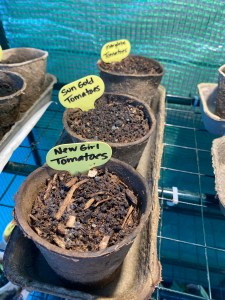 With the help of our extraordinary neighbor Vashti, we get to grow the glorious candy-like Sun Gold tomatoes. And straight from our friend Phina’s garden, we’ll also be growing Early Girl tomatoes and Legend tomatoes. She also brought us the Oregano plant pictured among the pretty green tomato leaves!