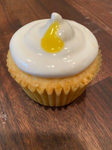 This was the first time I’d ever made my own lemon curd and I used lemons from our tree. The process wasn’t easy, but it was definitely worth it. The frosting didn’t end up as I was expecting, but it was all delicious! I even got to share a cupcake over the fence with our wonderful neighbor, Ti!