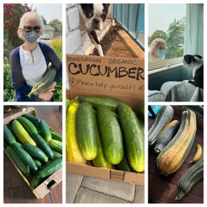 We also added a giveaway box of cucumbers to our front step for delivery drivers. We still have loads of cukes left. Please send us your favorite cucumber and zucchini recipes!