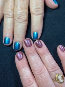 Between fatigue after yesterday’s immune-suppressing infusion and a nearly 100-degree heatwave, we weren’t up to much activity today. But it’s been a while since we’ve had fancy fingernails so I gave us each a manicure at home.